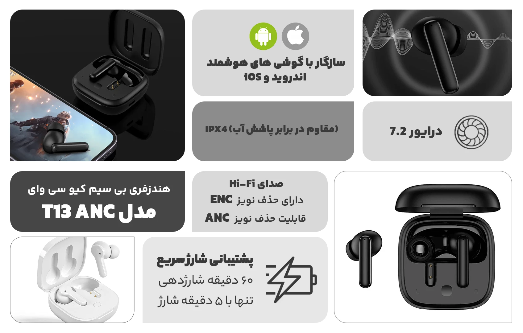 هدفون بلوتوثی کیو سی وای T13 TWS یکی از پرفروشترین و محبوبترین مدلهای اقتصادی این برند است که با طراحی ساده، کیفیت صدای قابل قبول و شارژدهی طولانی توانسته نیاز بسیاری از کاربران را در استفاده روزمره برطرف کند. این هدفون برای افرادی طراحی شده که به دنبال یک ایرباد خوشقیمت، سبک و کارآمد هستند و در عین حال میخواهند تجربهای روان و بدون دردسر از یک هدفون بیسیم داشته باشند. کیو سی وای در این مدل تلاش کرده میان عملکرد مناسب، قیمت مقرونبهصرفه و امکانات کاربردی تعادل ایجاد کند.